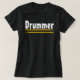 Drummer text with two drum sticks is a unique musician design and a fun gift design for drummers, music teachers and students in concert, jazz and marching bands.