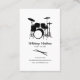 Drum music tutor business cards featuring a stylish black silhouette drum kit, name, job title, and contact information.