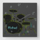 Have some fun with this personalizable drumset wall clock. Add your name, band name or delete the text on the drums. Customise the background colour. A great gift! Original artwork by Night Owl's Menagerie, 2010