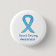 Drunk Driving awareness cause uses a blue ribbon. The awareness ribbon pin features the painting of a blue awareness ribbon on a custom button pendant. The awareness pendant notes "Drunk Driving Awareness". The blue awareness ribbon art lapel pins or buttons can be customised with personalised messages to make great cause buttons for fundraiser pendants, awareness pin gifts, or other special pendant events or awareness lapel pin for the cause's occasions.