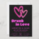 Drunk in Love Neon Pink Hearts Wedding Invitation