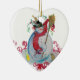 DRUNKEN SNOWMAN WITH BIRDS Red Flourishes Heart Ceramic Tree Decoration