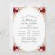 This Dry Tropical Leaves and Rose Wedding Invitation combines natural elements with elegance featuring a beautiful bouquet of burgundy roses and pampas grass. The decorative style maintains the rustic feel, while the elegant font elevates the tone. The fully customisable text is clear and concise, providing all the important details, including the wedding date, time, and location. This invitation is perfect for couples looking to add a touch of rustic charm while maintaining a sophisticated tone for their special day. Find matching items in the Tropical Rose Garden Wedding Collection. A printable file is available.