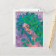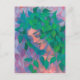 Postcard featuring colourful fantasy painting, forest tree spirit - dryad. Beautiful woman with green and violet birch leaves as her hair. Fantasy / surreal art, imaginary portrait. Pastel painting, soft pastels on paper, 43 x 49 cm, 2020