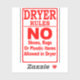 'Dryer Rules No Plastic' Laundromat Red Sticker