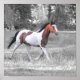 This is an american paint horse with an indian head with feather on his flank.