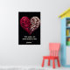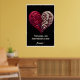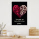 This striking poster features an intricate heart design against a deep black background, symbolising the harmonious union of two distinct but complementary souls. The left half of the heart glows in rich crimson red, while the right half shines in luminous cream white, creating a powerful visual contrast. Both sides are adorned with elaborate swirling patterns reminiscent of baroque or tribal art, with detailed etched lines flowing seamlessly between the two halves. The ornate scrollwork creates a sense of movement and intertwining connection, suggesting the complex bond between two individuals. At the bottom of the image, elegant script reads "Two souls, one heart-etched in love forever," reinforcing the theme of eternal union. The sophisticated design combines elements of traditional romantic imagery with a modern, almost mystical artistic style that elevates it beyond conventional valentine imagery.