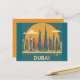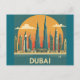 Dubai design in Vintage Travel style featuring a coastal scene with the beach and skyline of Dubai.