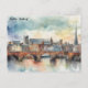 Dublin Ireland City Silhouette Watercolor Painting Postcard