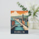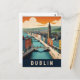 Dublin Ireland Retro Travel Art River scene Postcard