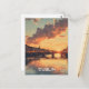 A postcard of the Liffey River in Dublin at sunset, with warm light reflecting off the water and historic bridges glowing in the evening glow.