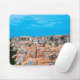Painting of red rooftops and blue sea from Dubrovnik city wall, Dubrovnik, Croatia. View from above of old town center.