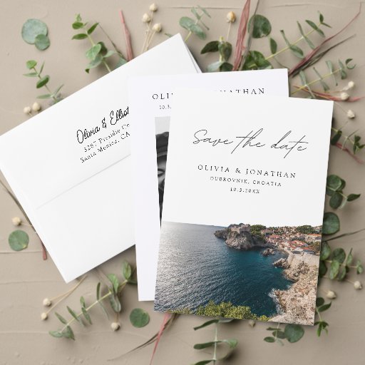 Capture the beauty of Dubrovnik and invite your guests in style with this photo save the date invitation. The front showcases a stunning photograph, setting the perfect tone for your wedding day. Add your own photo to the back and customise the text to make it your own.