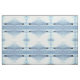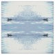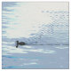 This very simply designed animal fabric design features a repeating geometric abstract pattern of a duck moving across the water, leaving a wake of ripples behind. The minimal colours are pale blue, grey, white, turquoise, green and black. A very graceful water bird!