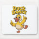Bright yellow cartoon duck in a lively dance pose with bold Duck Dance text. Clean lines, saturated colors, ideal for tees and playful gift items.