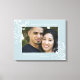 You can customise the photo and the text on this elegant duck egg blue and white floral photo template wrapped canvas picture. This would make a great wedding gift, anniversary gift, valentine's day gift, or engagement gift. Or, get one made and display it at your wedding and then have it as a keepsake. It's easy to change the photo and the text. Change out them both using personalise. For more extensive changes, such as changes to the font, font colour, font size, photo size, text placement, or photo placement, choose the "customise it" option. This is a beautiful wall hanging that goes well in any decor.
