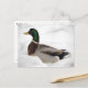 This postcard features a mallard duck, very surprised to find himself surrounded by fluffy white snow from an early storm. His lovely green iridescent neck, yellow beak and intricately patterned wings really stand out against all that white!