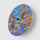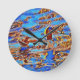 The clock did not take as long to arrive as I thought it might and was extremely well packaged. I didn't do the measurements so I didn't realize it is a little smaller than the average clock but that does not matter (just make sure you check if that's important to you).It is really nifty! It seems very solid and well made not flimsy at all. It has been going well and has kept good time in its few weeks on my wall. Nice product. Gets noticed too! Nicer in real life than the picture but true to the picture
