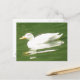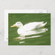 This lovely postcard features a photograph of a gorgeous white Aylesbury duck swimming across a duck pond in a park. You can see the ripples on the water and the reflection of the duck.
