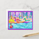 water colour painting of ducks in colourful hues, click customise to personalise these postcards.