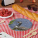 This paper plate features a duck swimming in a river in Guilford, Connecticut. Great for parties and picnics!
