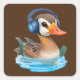 This is an AI created design. I wanted to have a cute duck wearing headphones while it was in the water. I am not sure what the green strips are on the side and back of the design. And I thought the design would look good on a brown background.