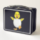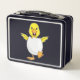 This is a standard metal lunchbox that appears to work just fine. We designed this box ourselves with an uploaded photo and custom text on the front and back. It looks absolutely beautiful except the front of the lunchbox is not centered like it shows in the photo. The print borders don't align with the inset flat part of the box where the preview photo online showed it perfectly centered in there. The back looks nice and centered though.