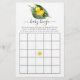 Gender neutral baby spring - easter baby shower bingo with elegant handwriting typography featuring a cute duckling napping in a blooming lilly of the valley.