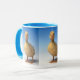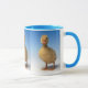 Photograph of cute yellow duckling repeated around mug three times as ducks in a row. Customisable mug colour, style, and size.