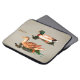 The sleeve is made of nice feeling material and seems very durable. I'm not sure how easy it'll be to clean, but the construction seems sound and the fabric is quick thick. I also like the double zipper. The printing is lovely and appears durable. The white on black contrast is nice, and the design very elegant.