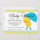 A cute little ducky with a blue umbrella and polka dot trim. Add your baby shower details by replacing the sample text shown in the design template. You can change the wording and move things around to suit your needs.