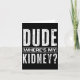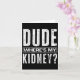 Dude Where's My Kidney Fun Get Well Surgery Kidney Card