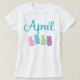 Announce your baby's due date with this fun Due In April maternity design. Fun pregnancy slogan with April Baby design in pretty colours on a ringer t shirt.