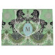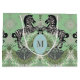 Regal Zebra raised on hind legs flanking a personalizable monogram, add your own, or leave blank. Pictured on a pale green background with starburst pattern