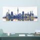 Dark Blue Skyline of Duisburg, a city in western Germany, at the junction of the Rhine and Ruhr rivers