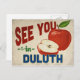 A charming Duluth Minnesota vintage travel postcard featuring a lovely red apple, along with fun retro style text that says, "See you in Duluth"