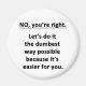 For the sarcasm lover in all of us. Check out this witty “No, You're Right. Let's do it the dumbest way possible because it's easier for you” design on apparel, mugs, mousepads, buttons, and other unique gifts.