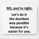 For the sarcasm lover in all of us. Check out this witty “No, You're Right. Let's do it the dumbest way possible because it's easier for you” design on apparel, mugs, mousepads, buttons, and other unique gifts.