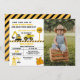 Simple Construction Birthday Dump Truck Invitation for your child's birthday! Featuring construction vehicles equipped with the words "Stop Traffic and Close the Road," Digger, bulldozer. It's simple to personalise simply clicking the personalised button.