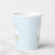 Serve drinks in sweet style with these dump truck first birthday paper cups! Featuring a cute truck carrying gifts and balloons with soft baby blue gingham pattern and dotted borders and the text “Rolling into ONE,” these cups are perfect for a boy’s first birthday party. A fun and coordinated addition to your party tableware.