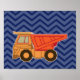 Dump Truck on zigzag chevron - Blue Poster