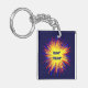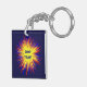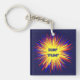 An acrylic keychain which features a political starburst abstract pattern in red, yellow and blue with the words Dump Trump in the centre. Text can be customised.