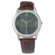The watch looks really great! Very sharp and well done. The leather band is really nice, though for a man's watch I think it should be longer. Unfortunately, it isn't big enough for my husband's wrist but I will get a replacement because he is very excited to wear it!