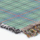A quality printed throw has its advantages. This is a much finer weave throw than its loopier cousins, and though lighter, it is worth the investment for custom room accessorizing. The back is much prettier than the typical brown, and the fringe on the long sides very vivid, the selvage nicely done. Before photographing, I washed the throw in cold water, delicate, with a thicker woven throw the same size. On tumble dry low, this throw was dry in half the time as the other. This is a very practical quality if you use throws for furniture covers or to wrap up in frequently. The sleekness of the fabric makes it a great layer for accenting or protecting without the feeling of sitting on too much stuff. Perfect for napping or when you feel a light chill coming on. The color printing is beautiful and on this fabric, matched the design and color of my Photoshop image. This is an advantage for blending room fabrics and colors. The fringe on the short sides prints the colors from the design image and therefore varies from the side fringe. I streaked a white fractal line through the plaid pattern to give the illusion of weaving. This printed as crisp as an illusory thread, and put some white in the short side fringe, showing another advantage of print vs loomed- for artistic purposes, line lines, detail, and color integrity can be planned and preserved. My loomed throws have color limitations and more of a needlepoint texture. Print throws reproduce an exact image. The throw felt a little stiff straight out of the package, but this went away in the first delicate wash. Of course I searched the wash water for ink or bleeding and there was none.