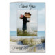 Wedding Thank You note card featuring your own wedding picture framed by dunes overlooking a beach and the ocean. There is also space inside to add more photos.