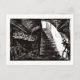 Dungeon of Despair postcard: is Vintage Death art by FRANCESCO PIRANESI 1756-1810. It depicts an ragged man standing at the bottom of a set of stairs with his hands clasped together looking at his feet at a skull with an entire skeleton not far away and upon a shelf rows upon rows of other skulls. All in black and white.