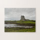 Jigsaw puzzle of the mediaeval Dunguaire castle under a grey sky in Kinvara, county Galway, in Ireland.