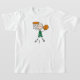 A boy stick figure basketball player wearing a green jersey dunks the ball into the basket on this cute stick figure basketball T-shirt!