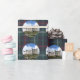 A modern, blue and green Sutherland tartan forms the background for a beautiful photo of the clan's seat, Dunrobin Castle, to create an unforgettable, vintage look wrapping paper.