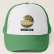 The image is generative content. I had this image of a durian so I thought why not throw it on a hat. And since a Durian is green I thought it should be on a green hat. Then I put the name Durian under the image of the fruit.